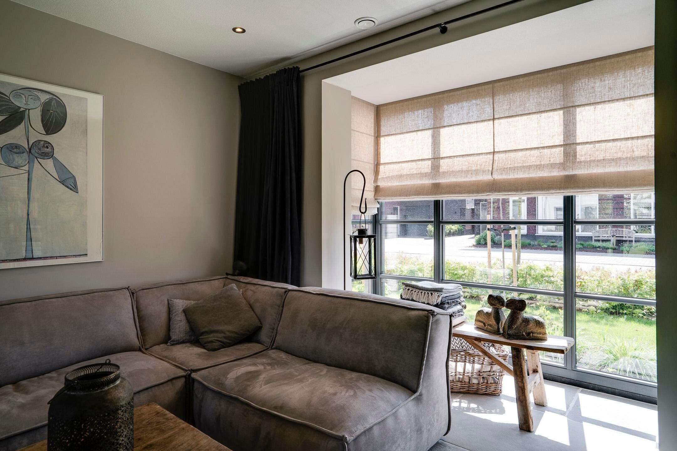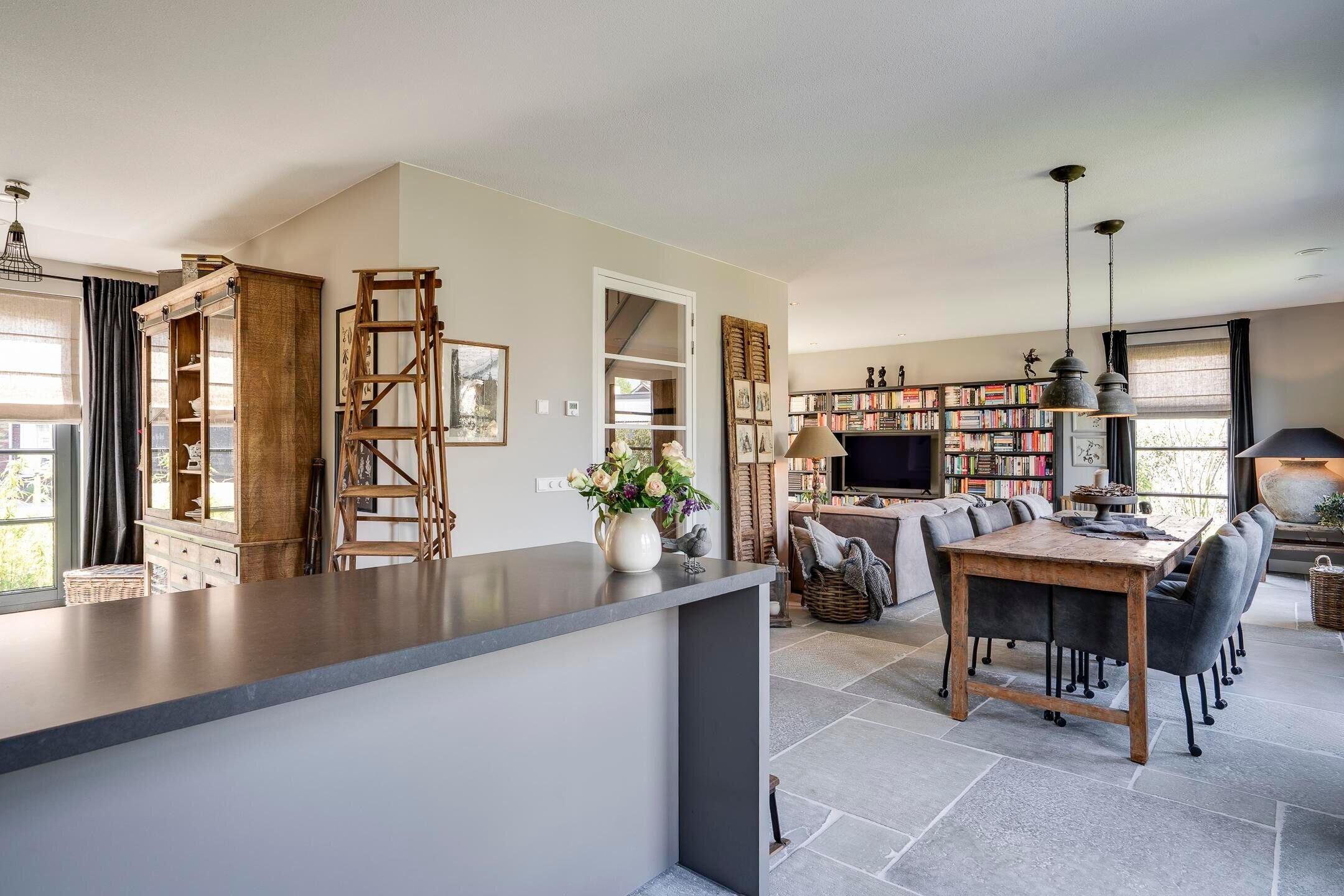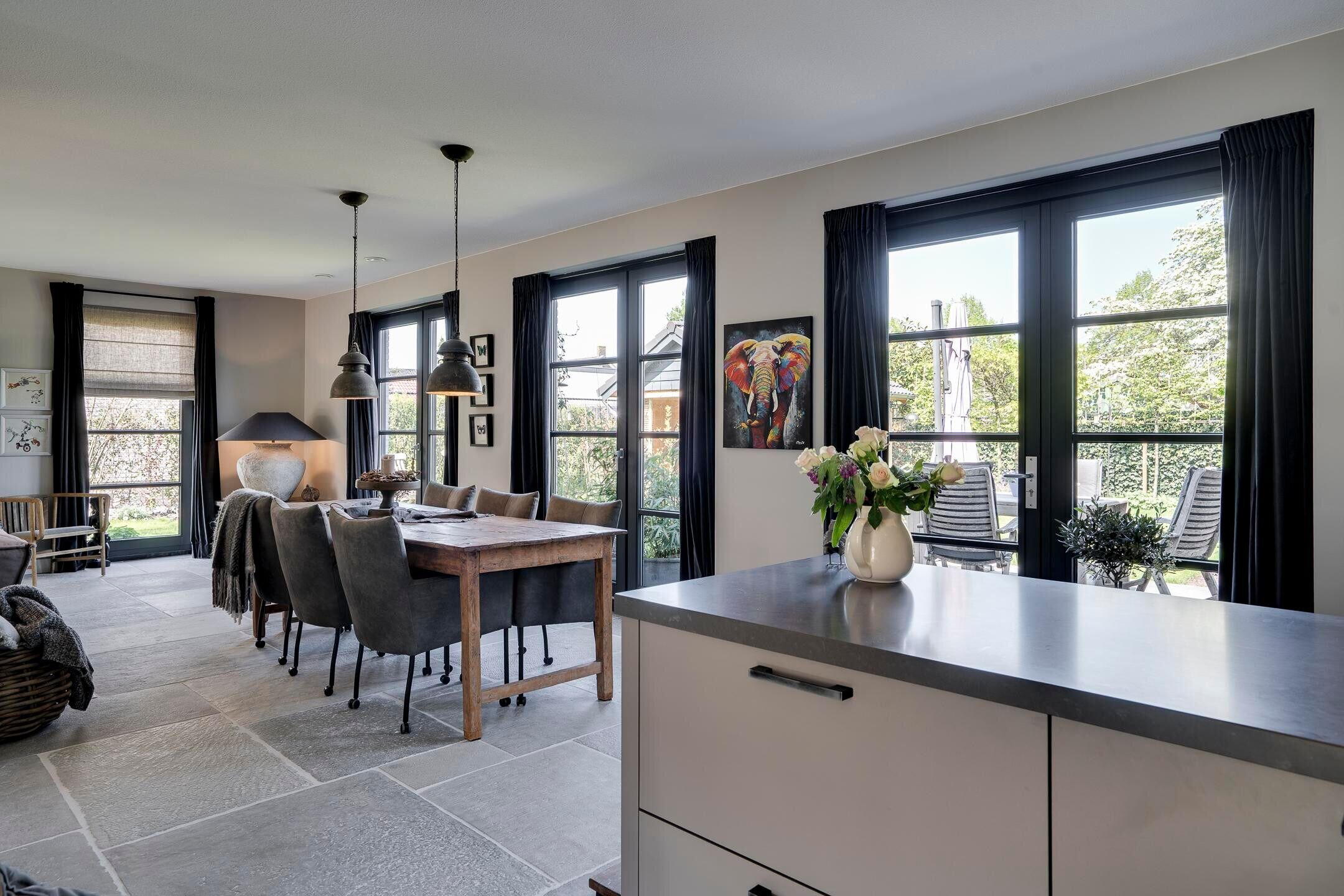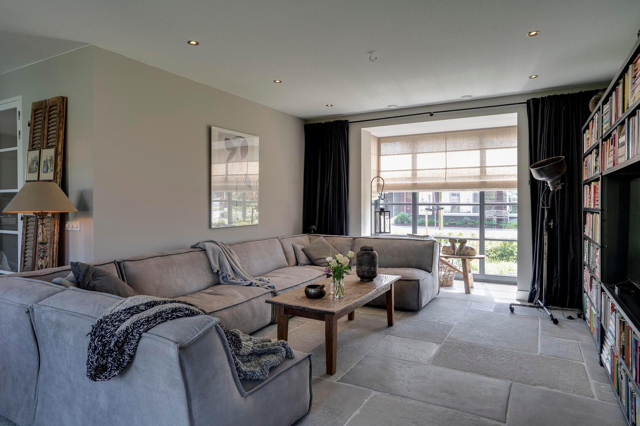 Bij binnenkomst valt direct de hoogwaardige afwerking op. De leefruimte is licht en ruim met mooie openslaande deuren naar de tuin en veel raampartijen die zorgen voor natuurlijk licht. Het geheel staat in open verbinding met de eethoek en keuken. Een luxe en compleet uitgevoerde keuken met een inductie kookplaat, oven, vaatwasser, grote koelkast, vriezer en Quooker.