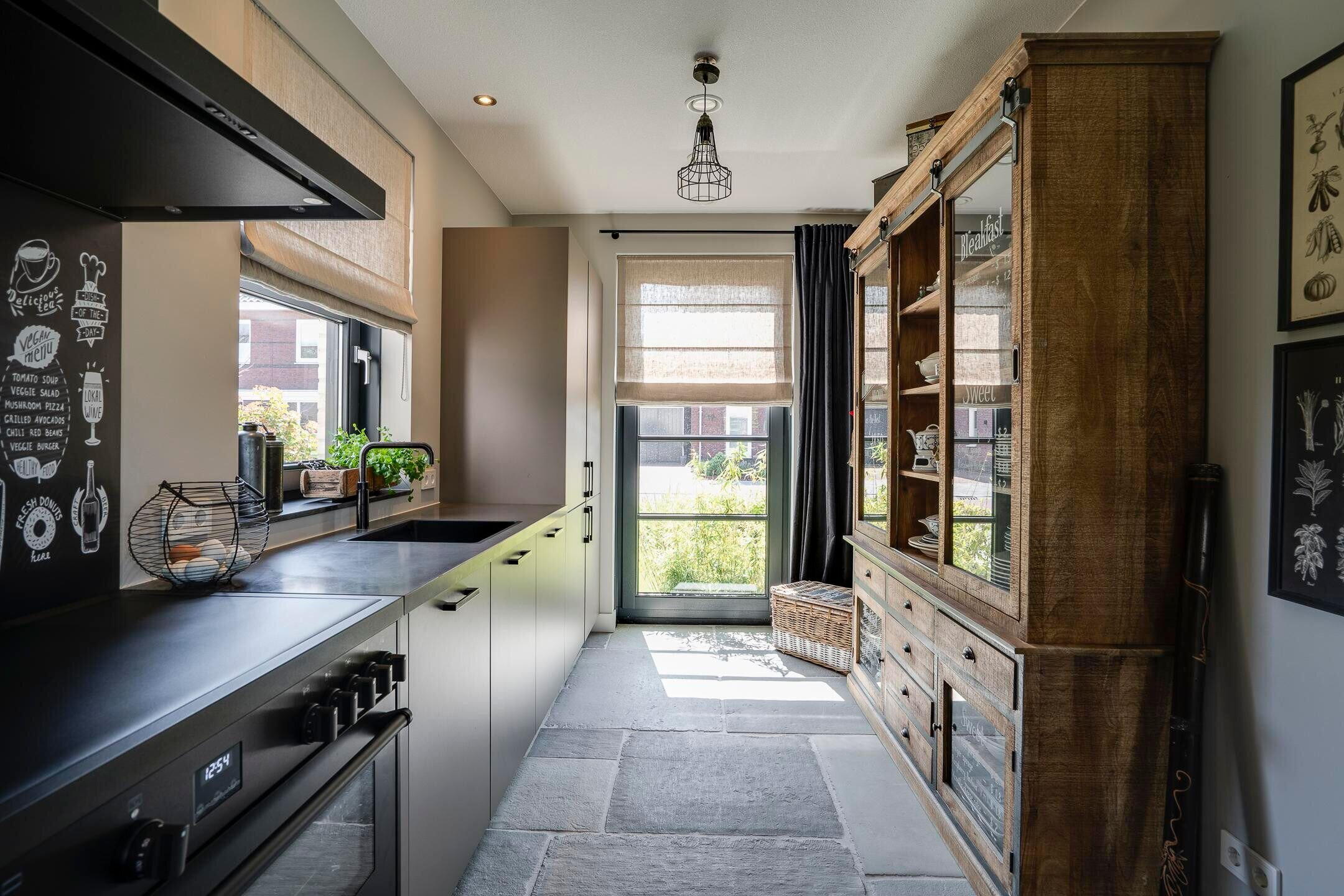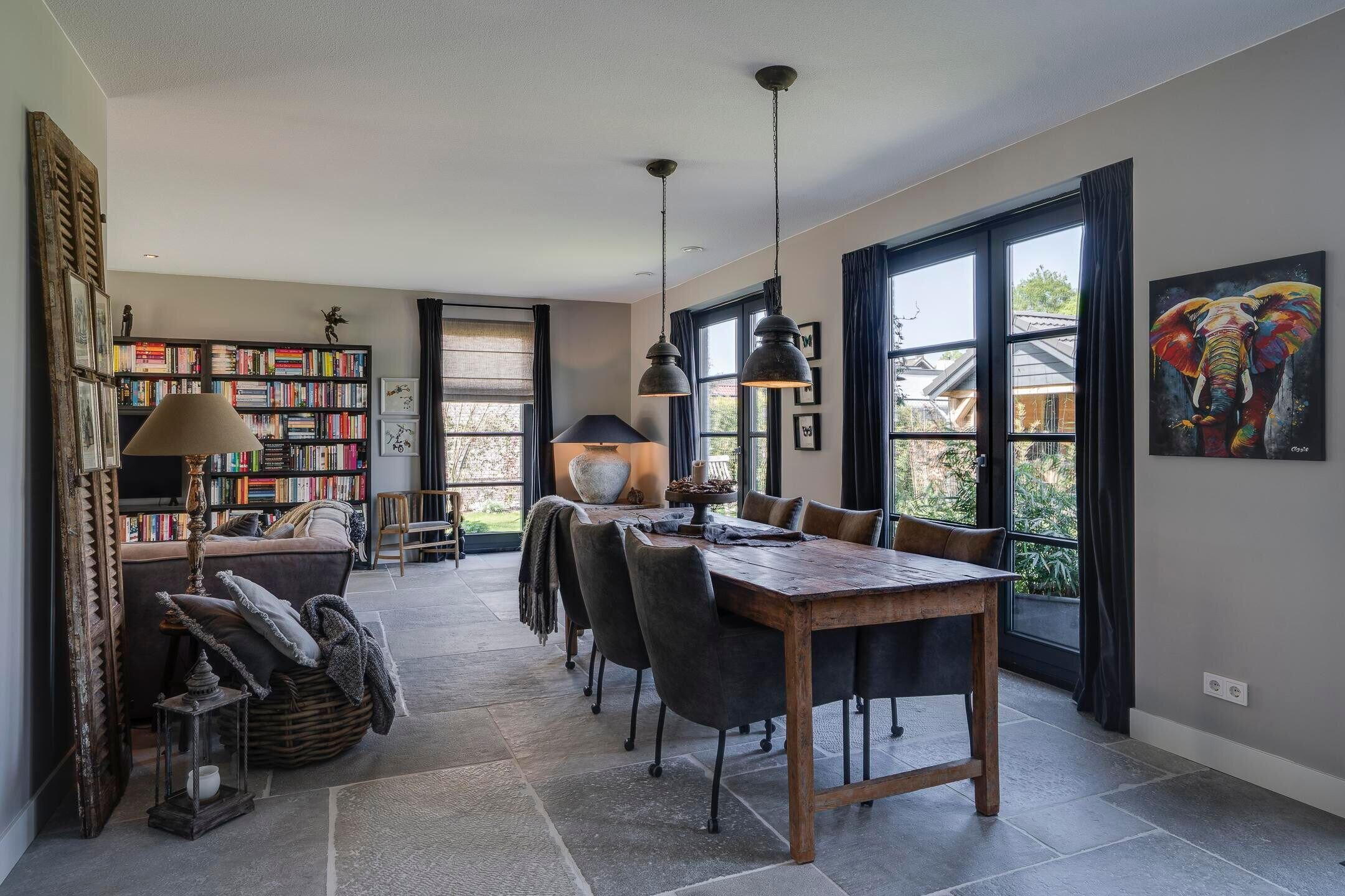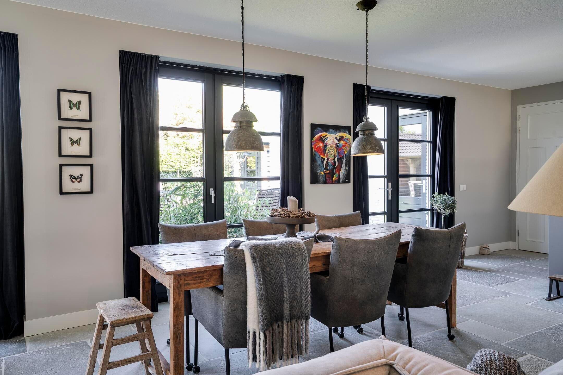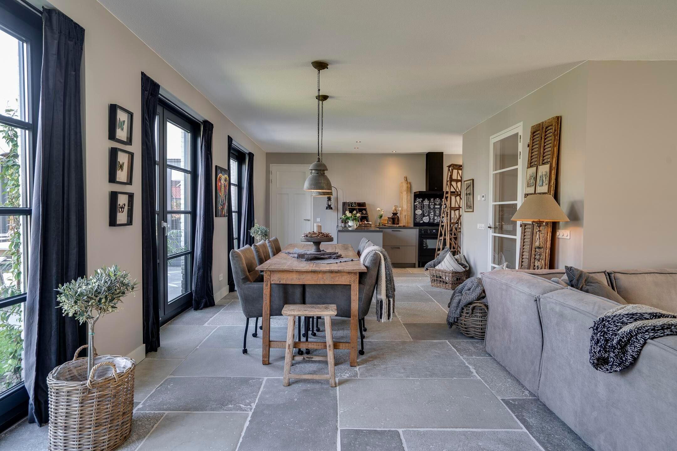 Bij binnenkomst valt direct de hoogwaardige afwerking op. De leefruimte is licht en ruim met mooie openslaande deuren naar de tuin en veel raampartijen die zorgen voor natuurlijk licht. Het geheel staat in open verbinding met de eethoek en keuken. Een luxe en compleet uitgevoerde keuken met een inductie kookplaat, oven, vaatwasser, grote koelkast, vriezer en Quooker.