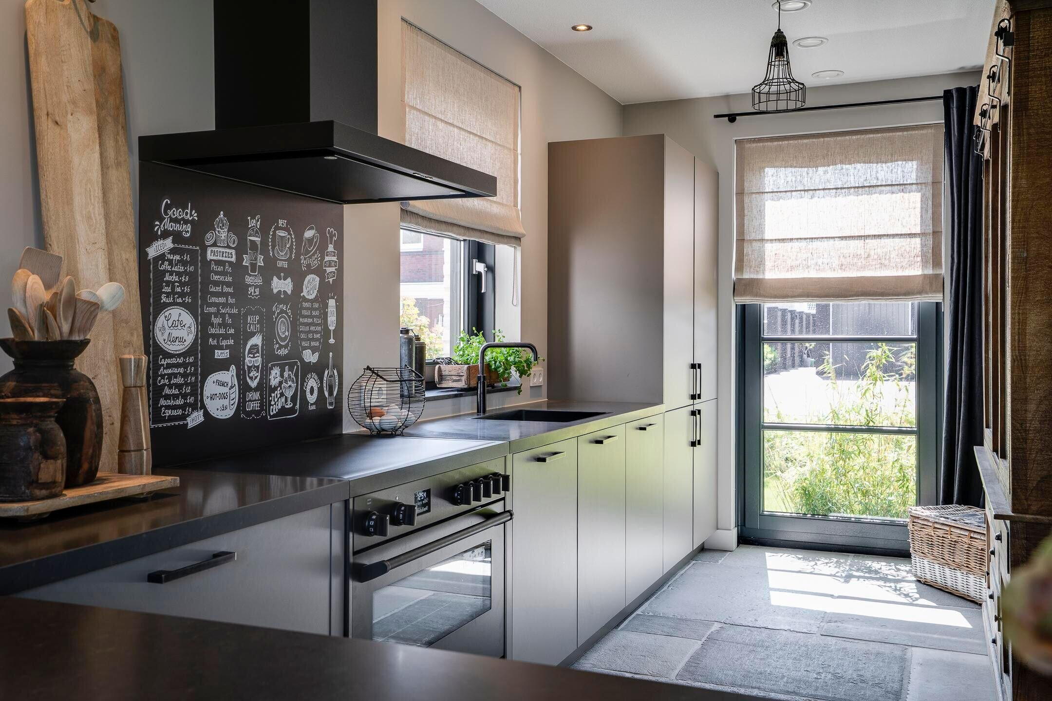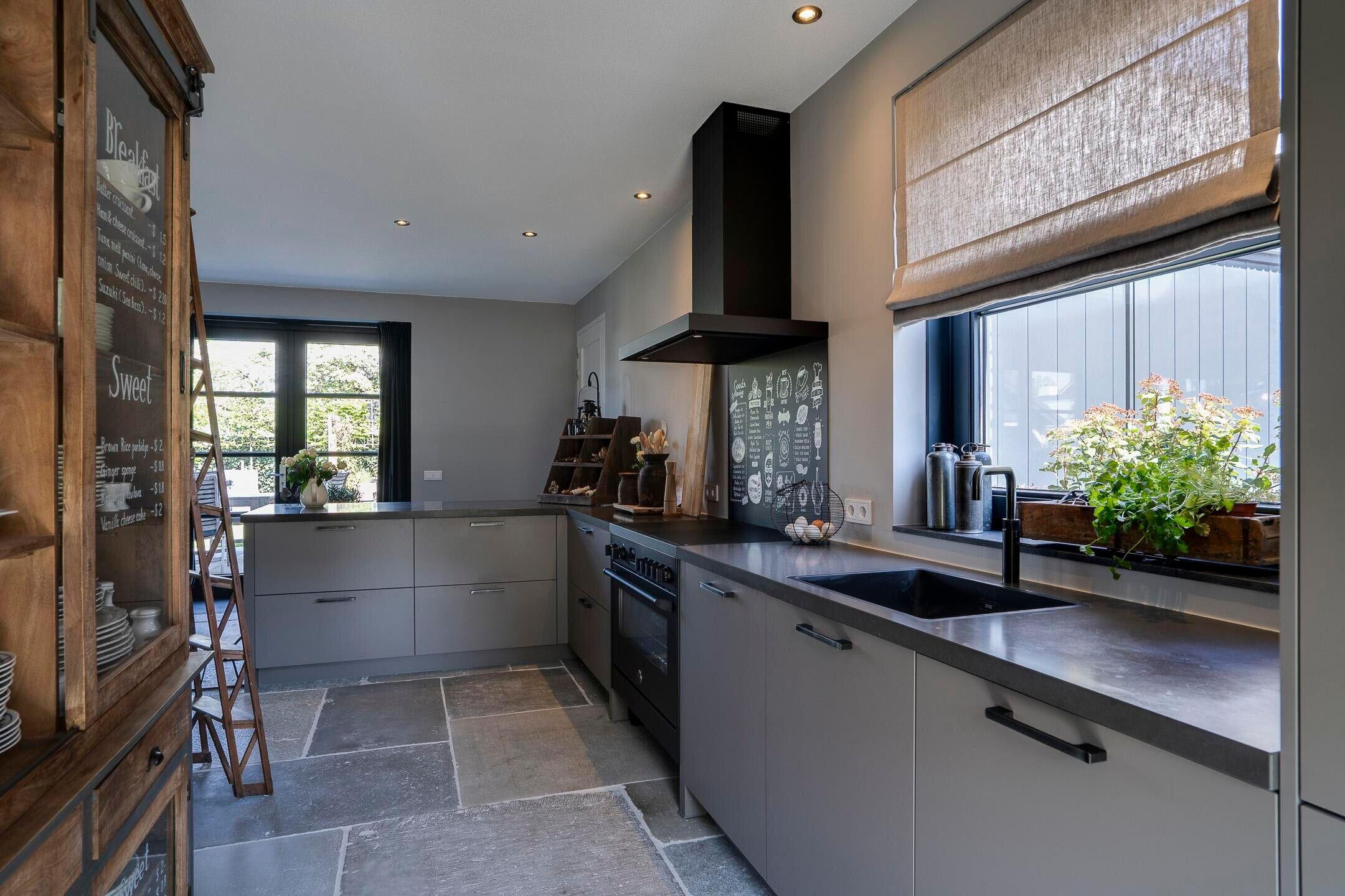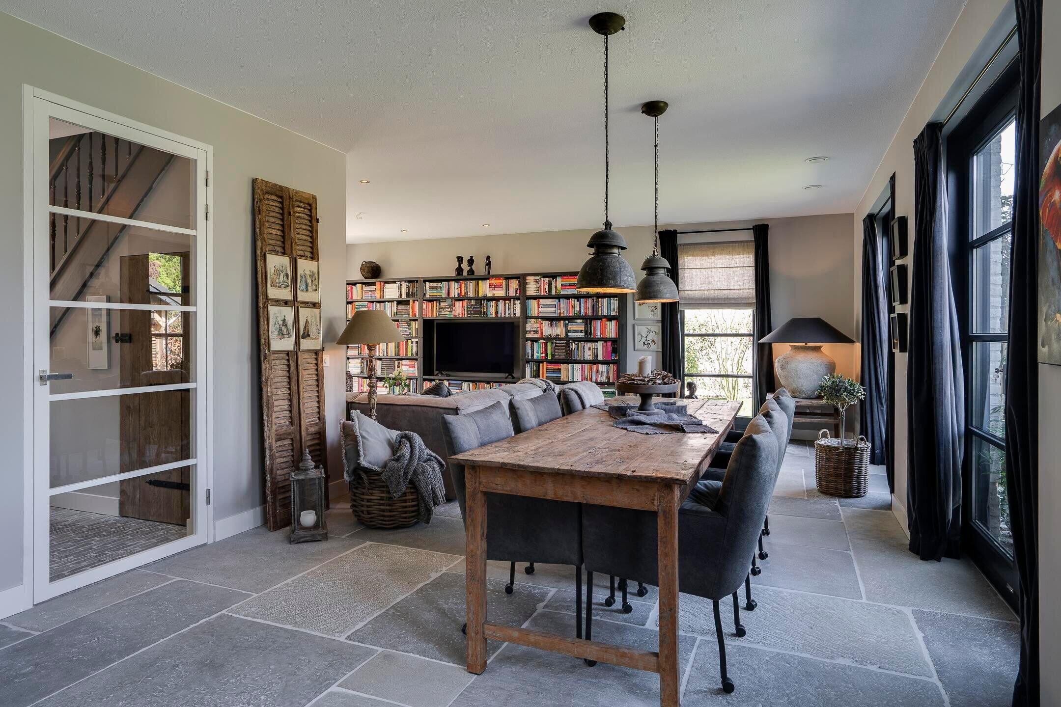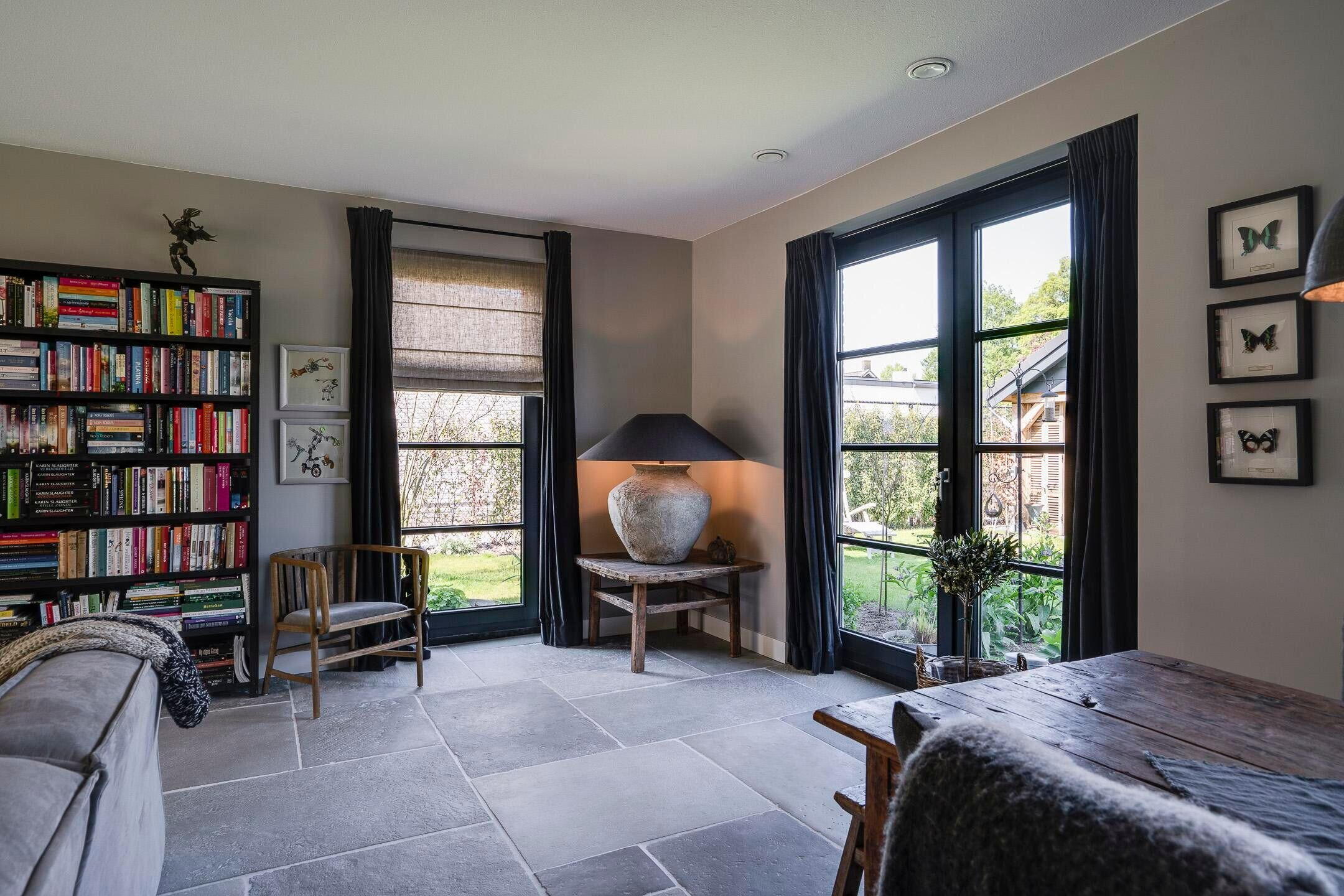 Bij binnenkomst valt direct de hoogwaardige afwerking op. De leefruimte is licht en ruim met mooie openslaande deuren naar de tuin en veel raampartijen die zorgen voor natuurlijk licht. Het geheel staat in open verbinding met de eethoek en keuken. Een luxe en compleet uitgevoerde keuken met een inductie kookplaat, oven, vaatwasser, grote koelkast, vriezer en Quooker.