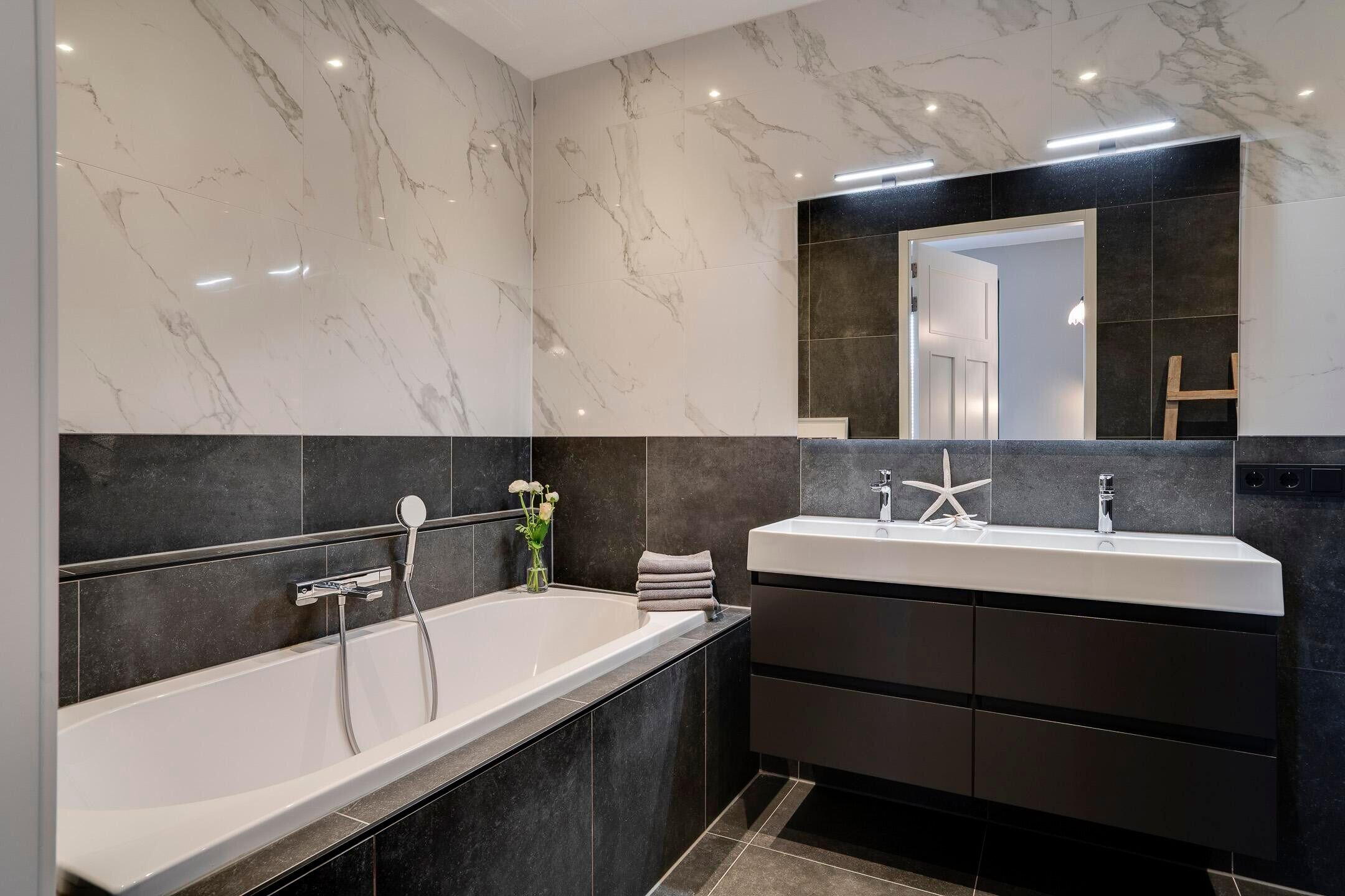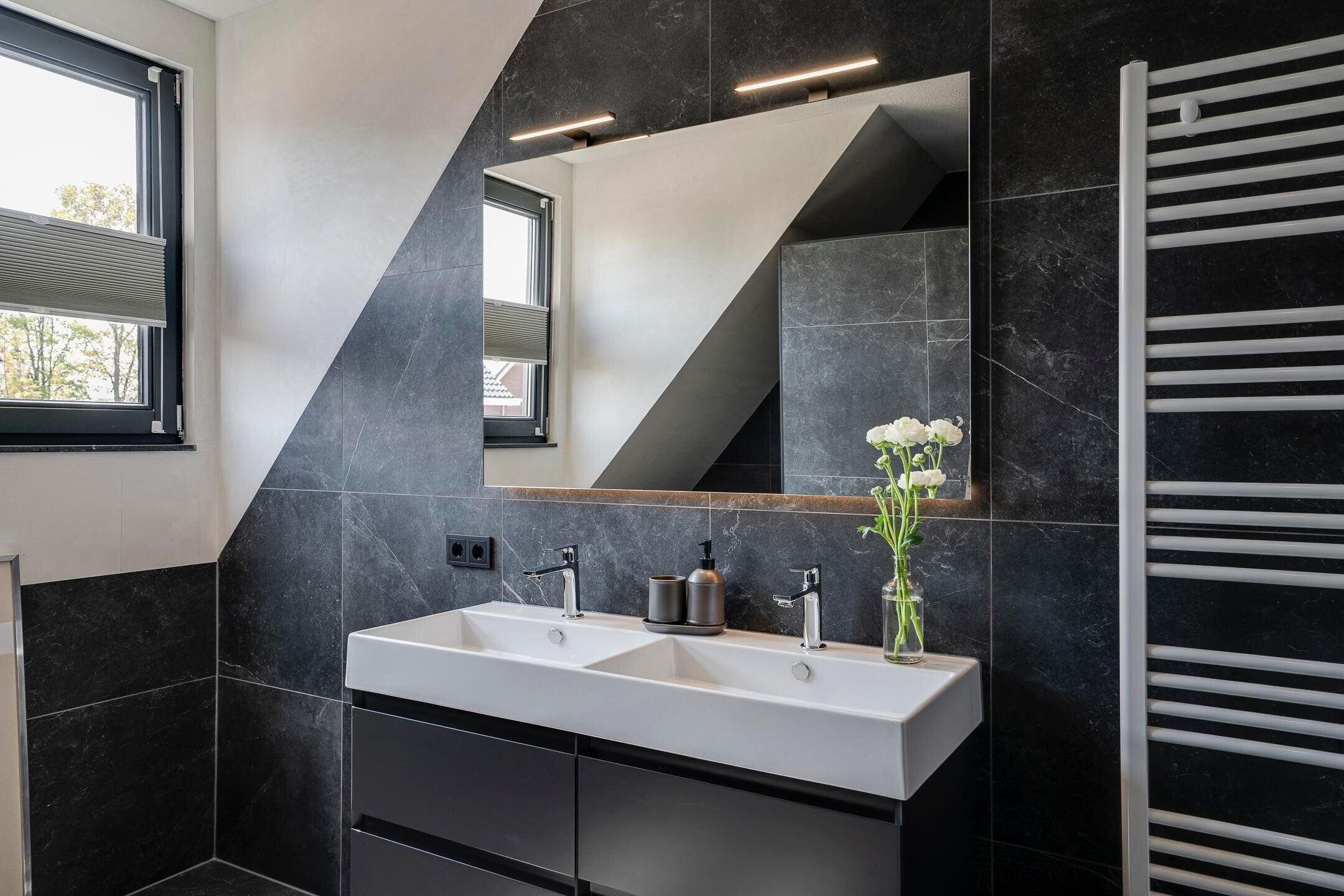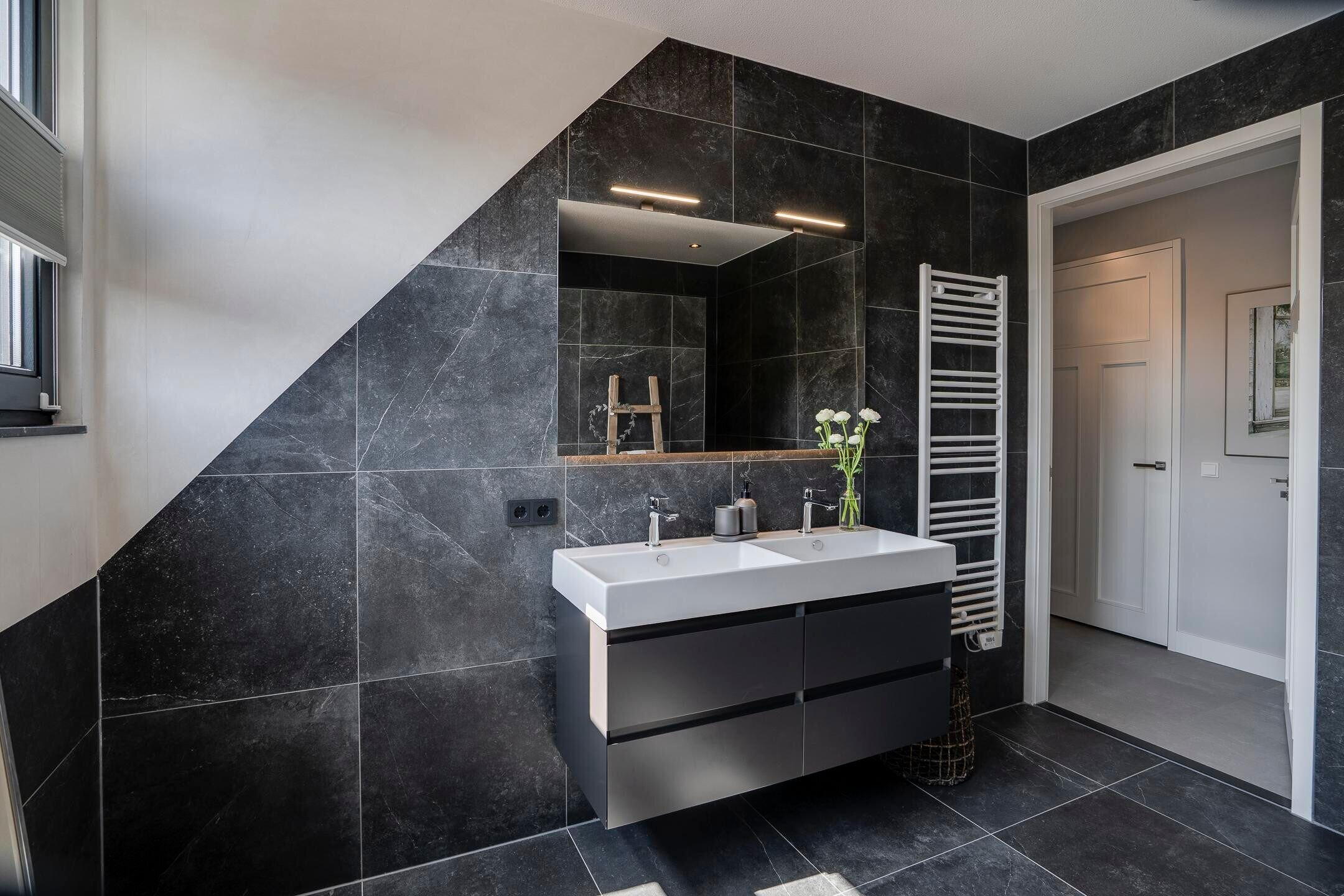 - 2 dubbele wastafels, 2 inloopdouches, vloerverwarming, 2 wastafelmeubels, en ligbad