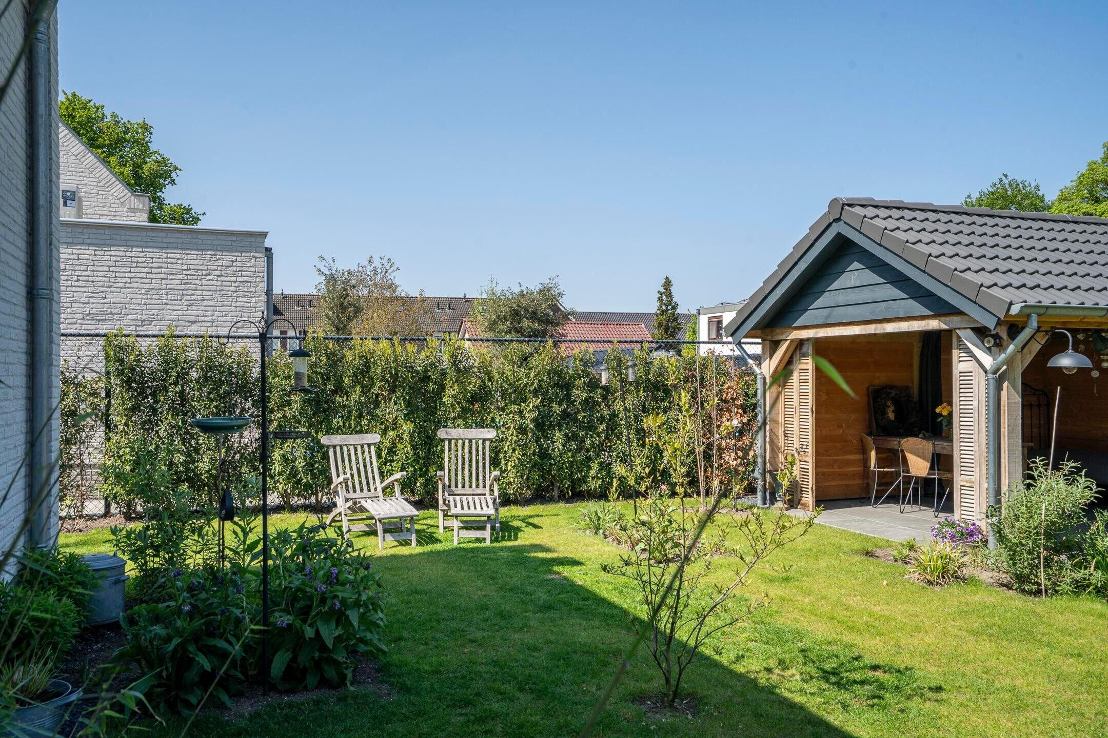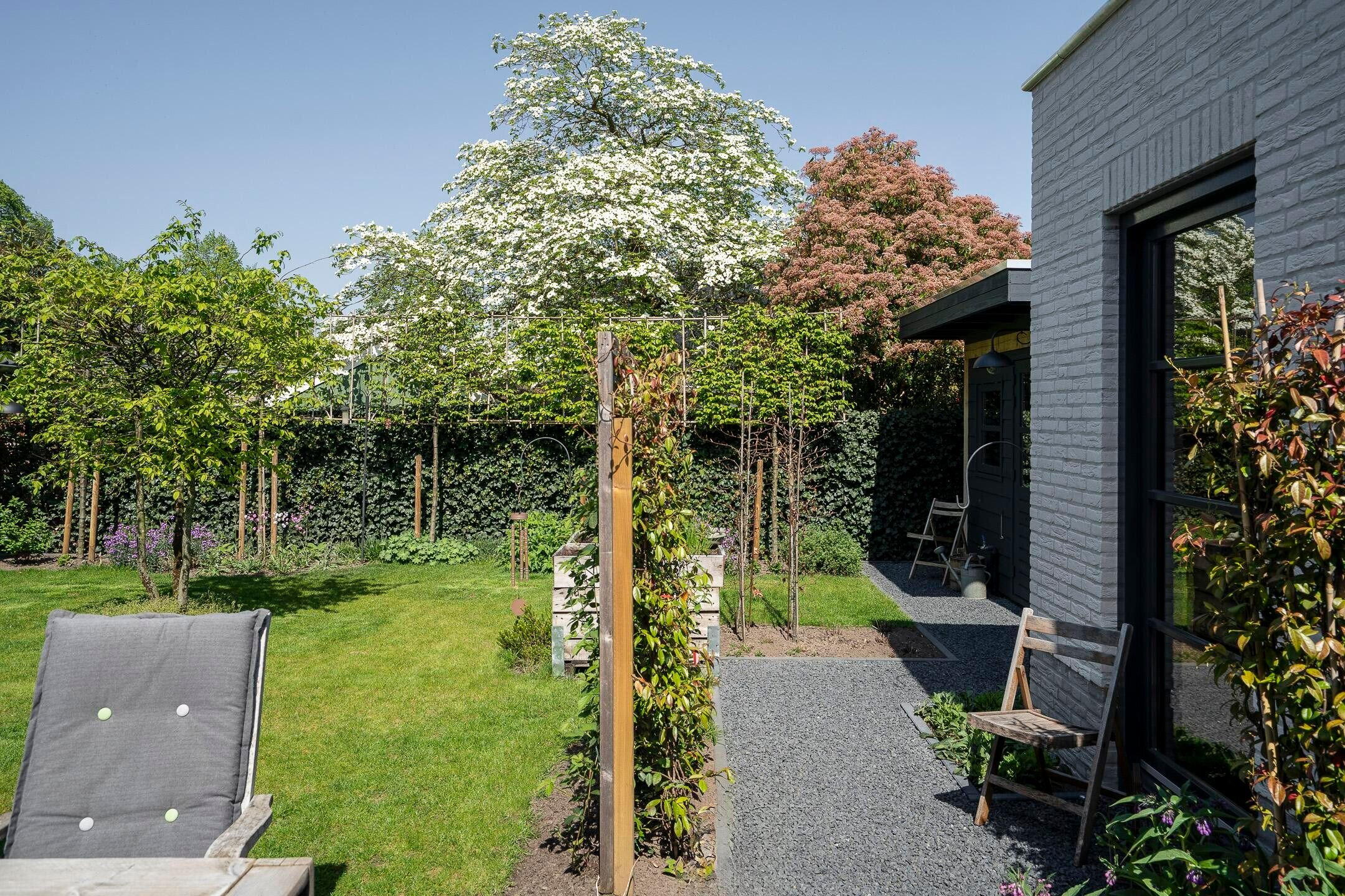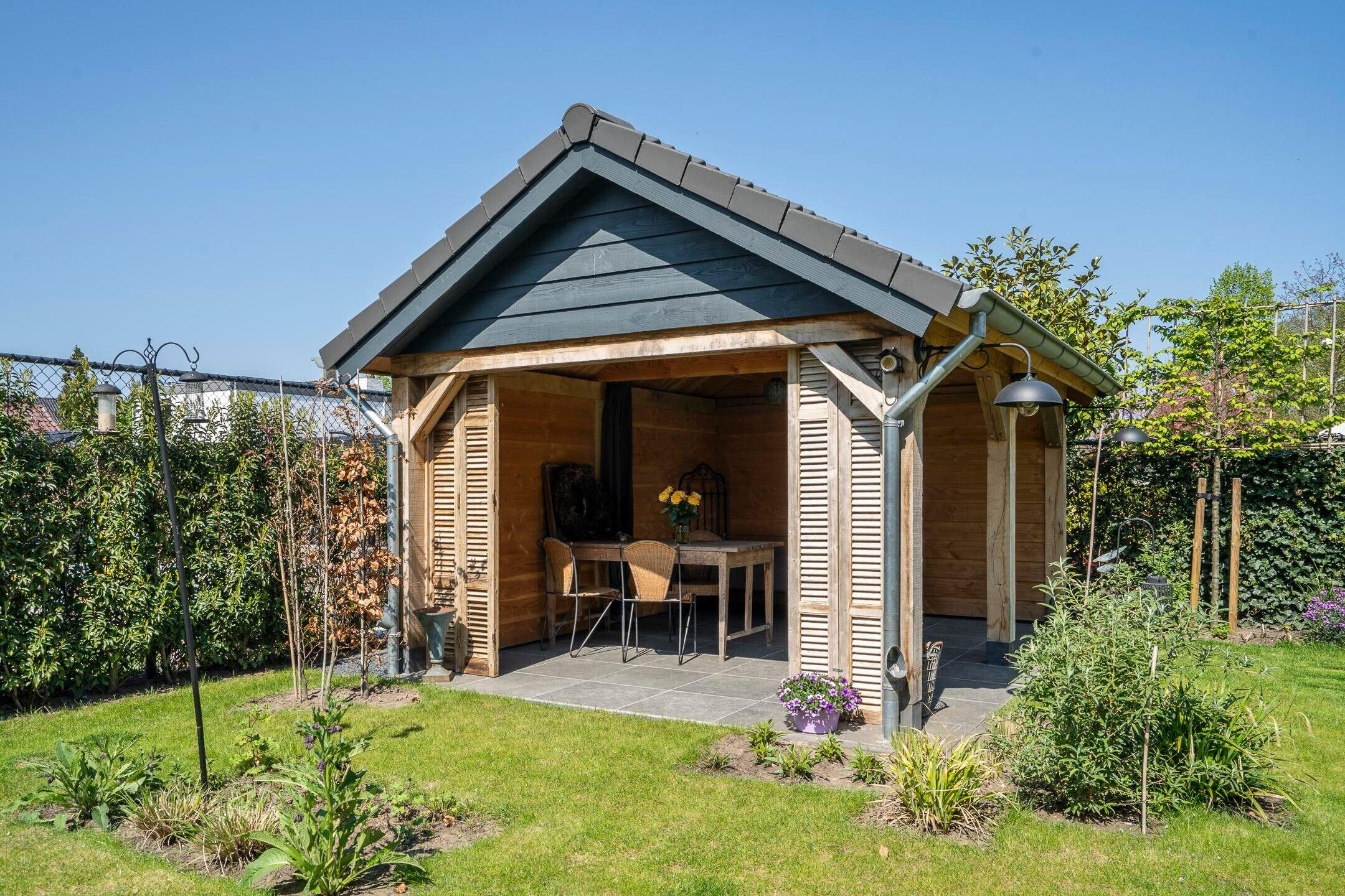 De onder architectuur aangelegde tuin rondom de woning biedt veel privacy. Hier vindt u onder meer een terrasoverkapping, een volledig geïsoleerd tuinhuis en een grondwaterput ten behoeve van de beregening van de tuin. Bij de oprit zijn voorbereidingen getroffen voor het plaatsen van een laadpaal.