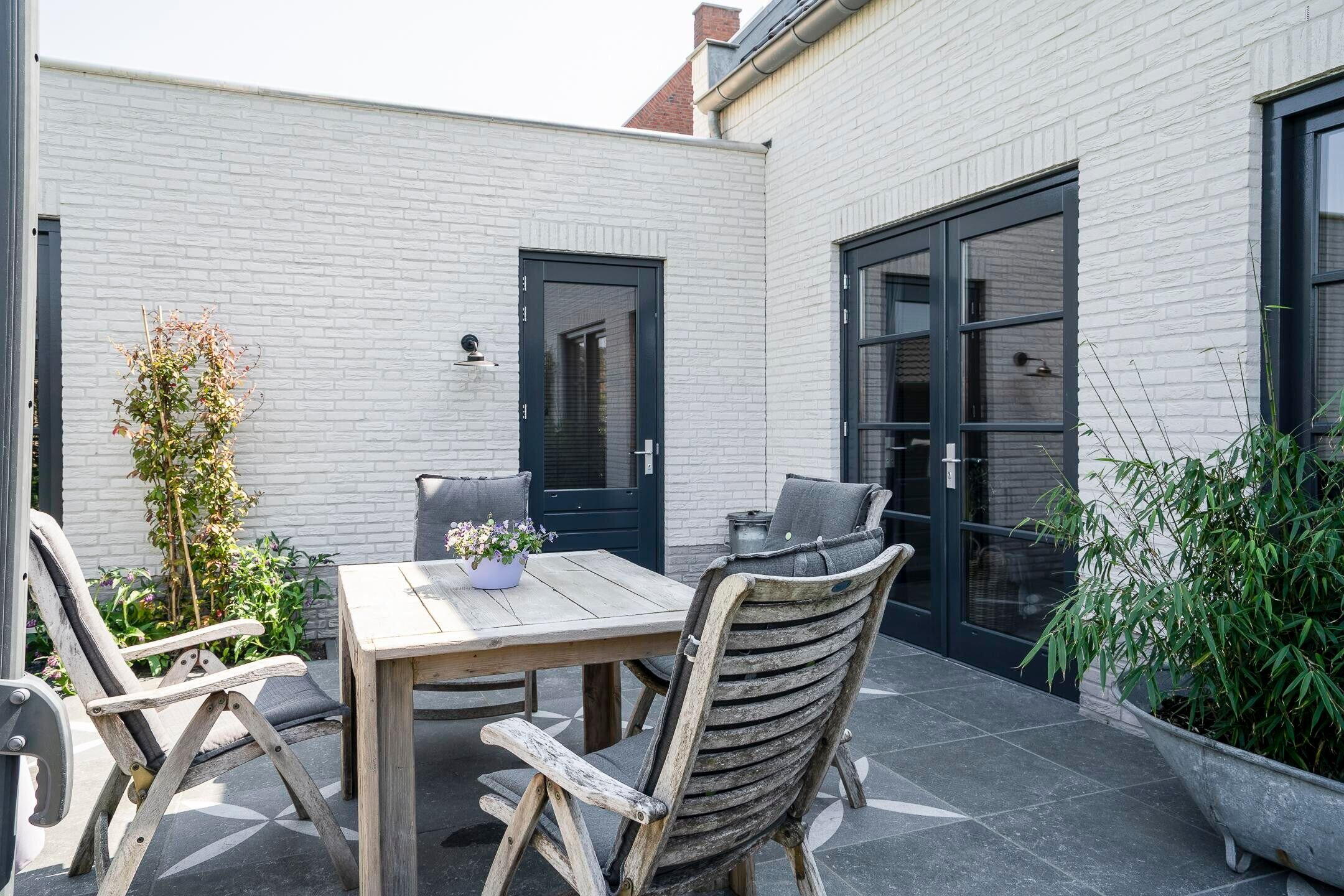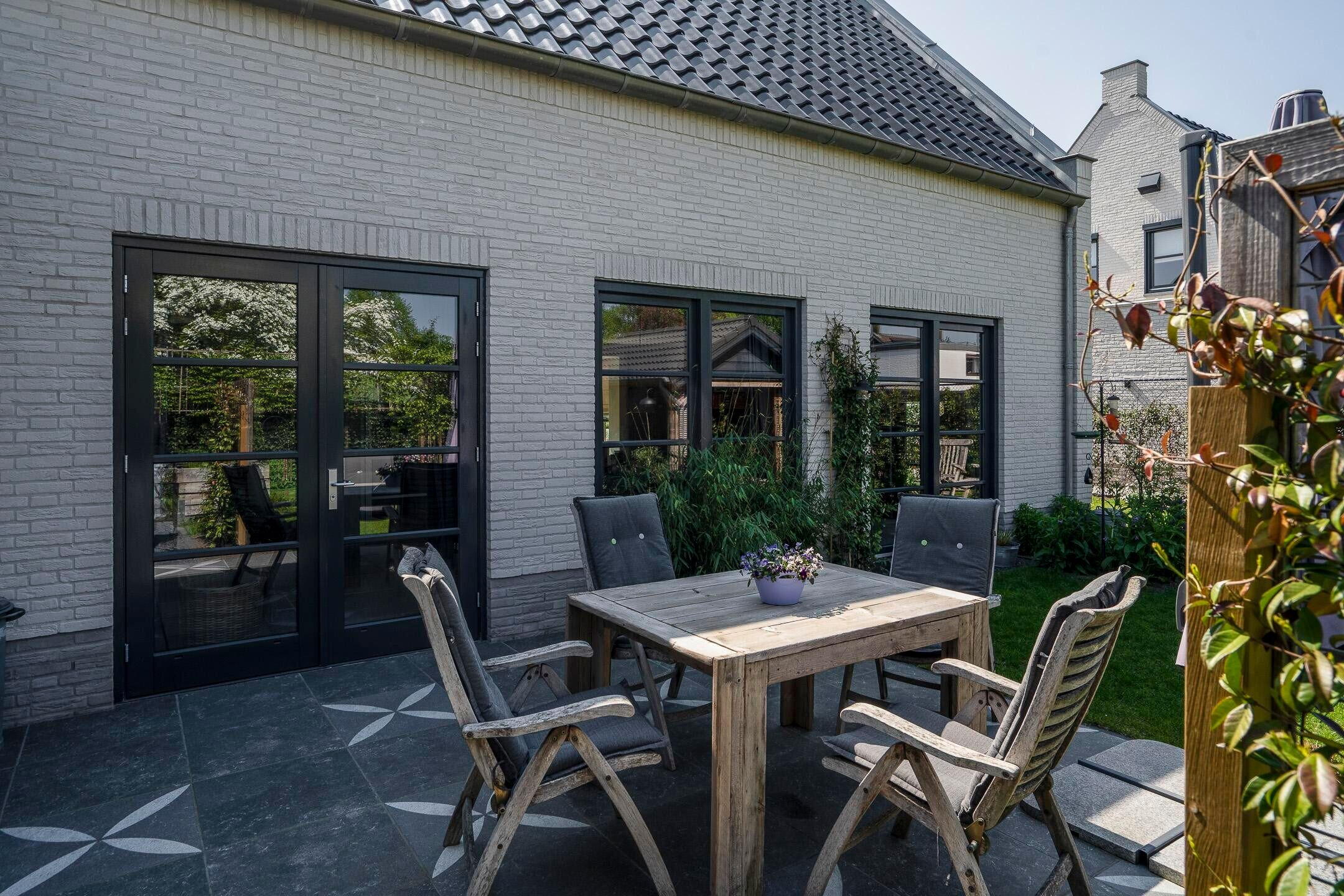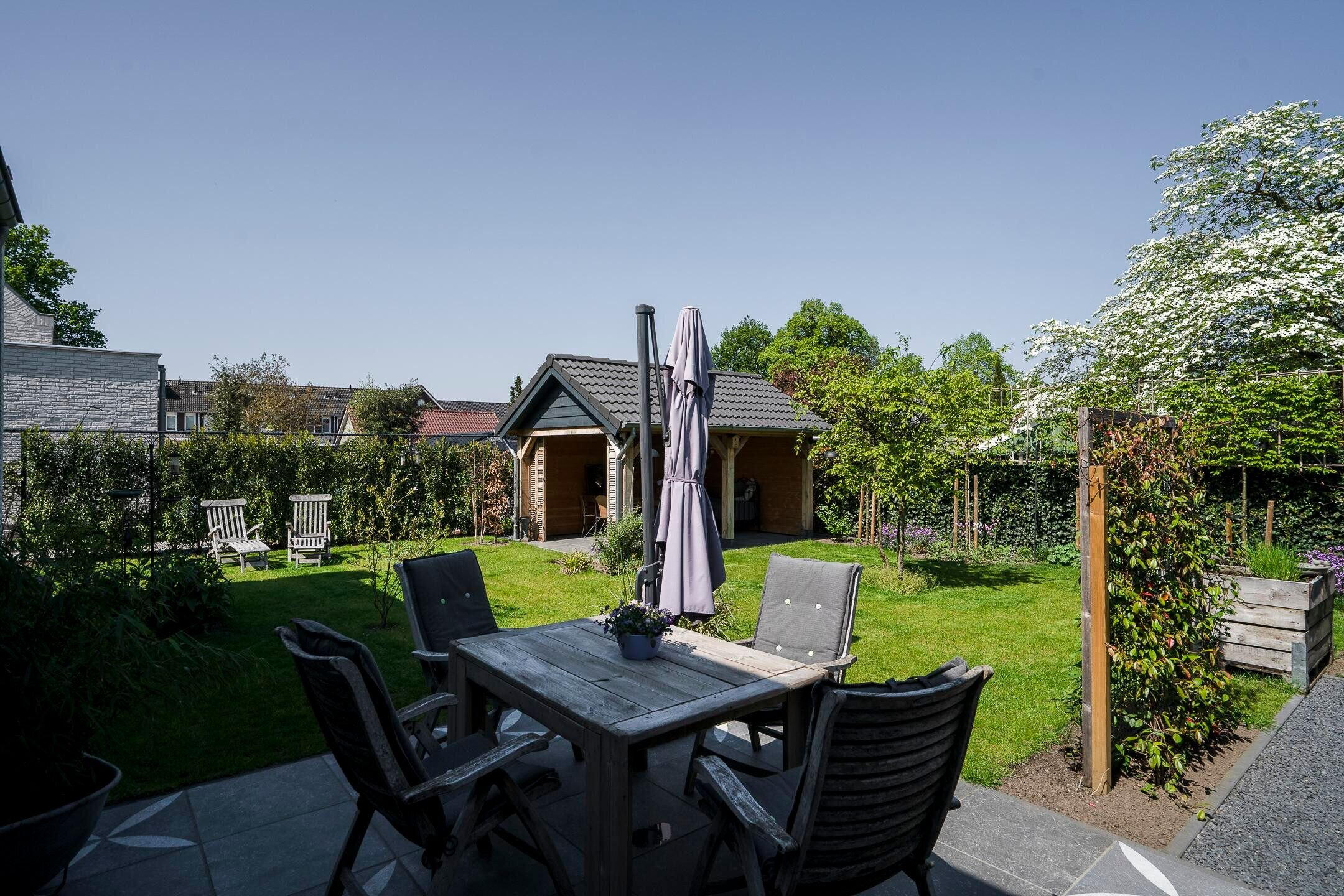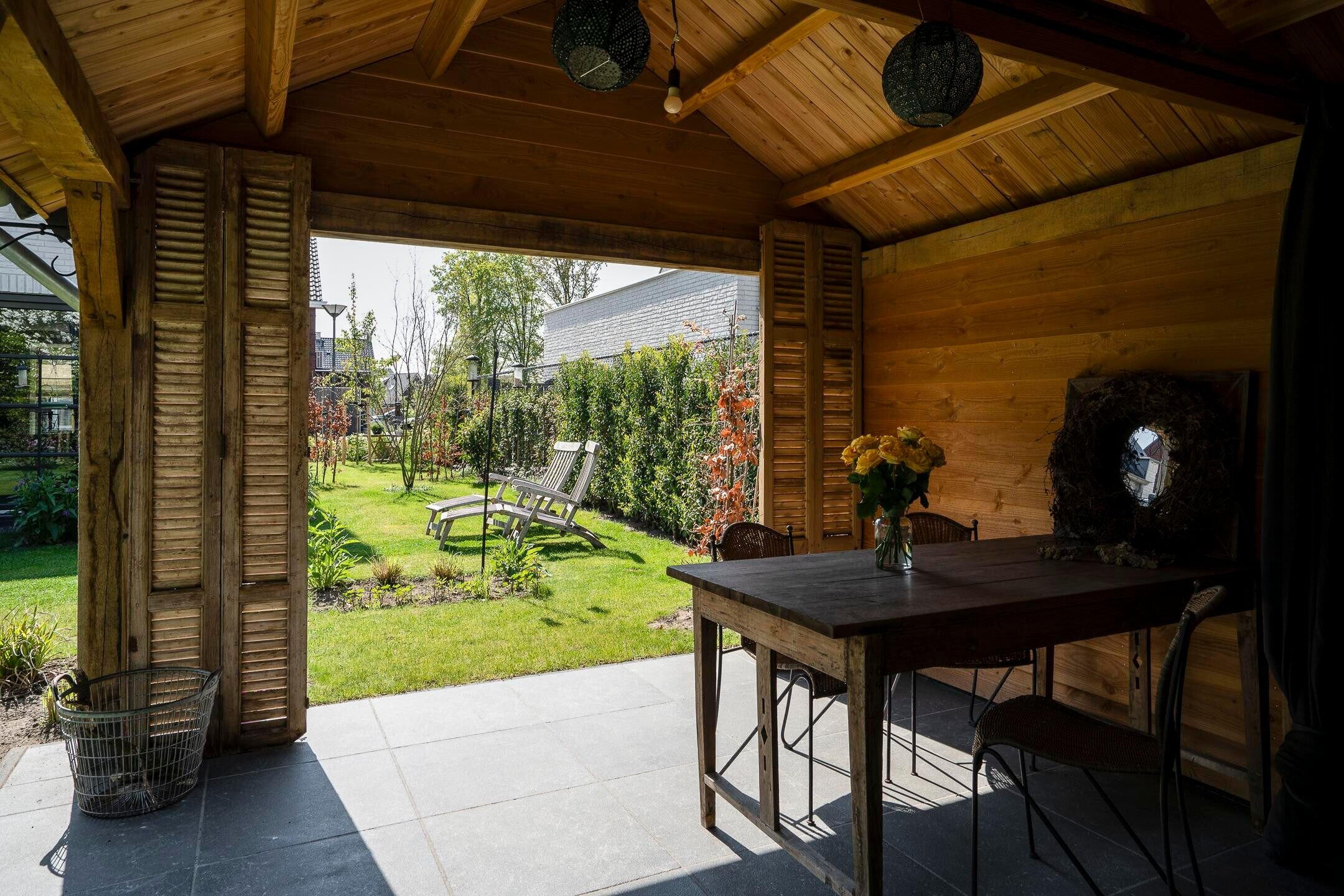 De onder architectuur aangelegde tuin rondom de woning biedt veel privacy. Hier vindt u onder meer een terrasoverkapping, een volledig geïsoleerd tuinhuis en een grondwaterput ten behoeve van de beregening van de tuin. Bij de oprit zijn voorbereidingen getroffen voor het plaatsen van een laadpaal.